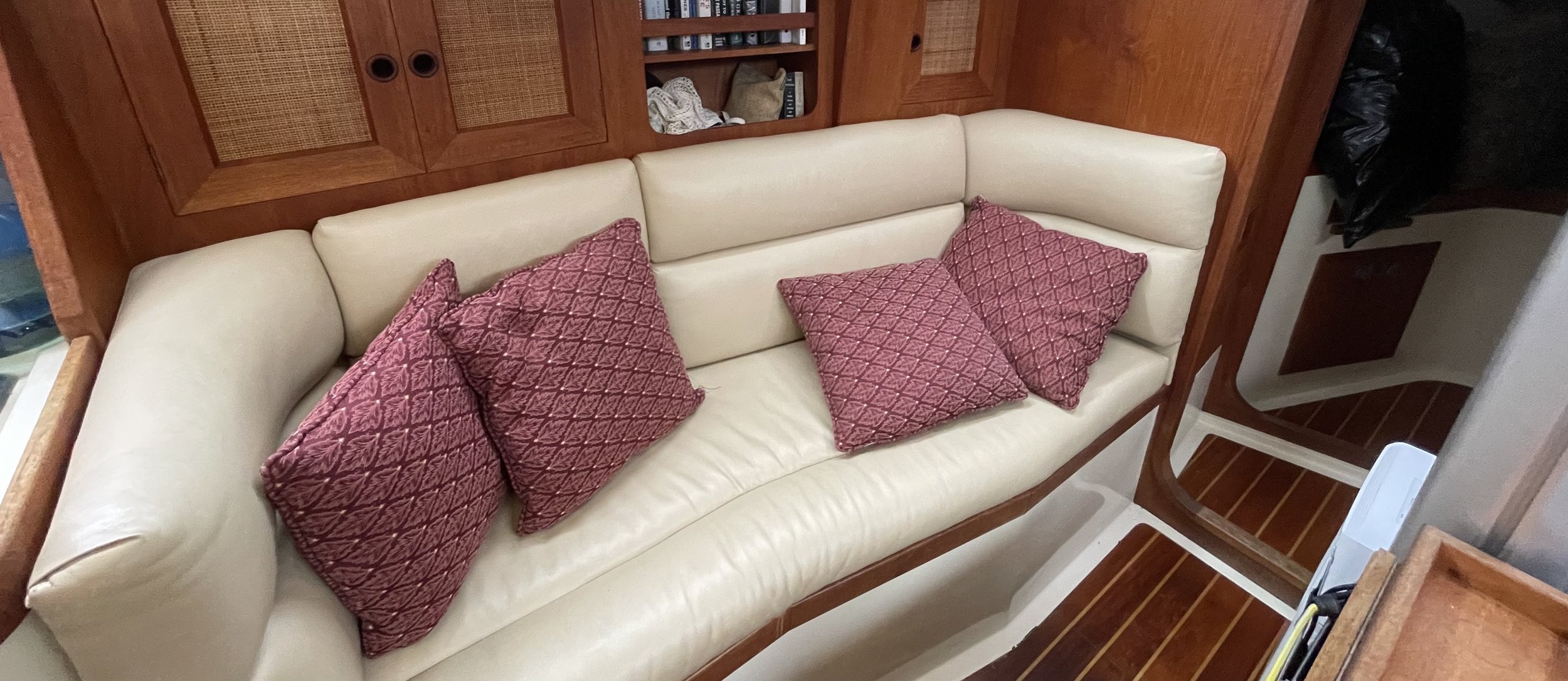 The diesel 28 hp engine has a remarkable just under 700 hours on it. I ran it for 10 minutes to show the change in the two readings, it isn't broken. When I purchased it in July 2017, it had just over 300 hours on the engine. From the almost new condition of the sails, my best guess is that it mostly sat unused in a freshwater marina for most of its life with over half of the time being on the hard (Ontario winters). I have averaged about three to four weeks of sailing per season since 2017. I moved it to the West Coast in June, 2020.